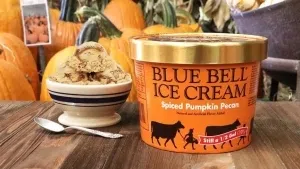 2. Blue Bell Ice Cream Spiced Pumpkin Pecan. Blue Bell was kind enough to bring in this delicious flavor to the studio for all of us to try. It was so delicious I could not stop eating it! I usually despise pumpkin flavored ice cream but Blue Bell NAILED IT! Eating this ice cream, I felt like a happy black cat that was adopted by a creamery. I highly recommend this ice cream!