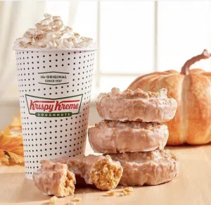 5. Krispy Kreme Pumpkin Spice Cake Donut. When I’m in the mood for all of the sugar and I want to (trick or) treat myself, I go for the Krispy Kreme Pumpkin Spice Cake Donut! Krispy Kreme has a variety of delicious pumpkin theme donuts but what’s awesome about the PS Cake Donuts is that you can buy them at your local grocery store. So, if you don’t live near a Krispy Kreme bakery, check out a grocery store near you.