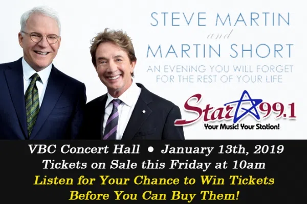Steve Martin and Martin Short are coming to the VBC Concert Hall on January 13th with an Evening You Will Forget For the Rest of Your Life! Tickets go on sale this Friday at 10am through ticketmaster.com or the VBC Box Office. Listen to The Early Morning Crew with Kevin and Leeann for your chance to win tickets before they go on sale!